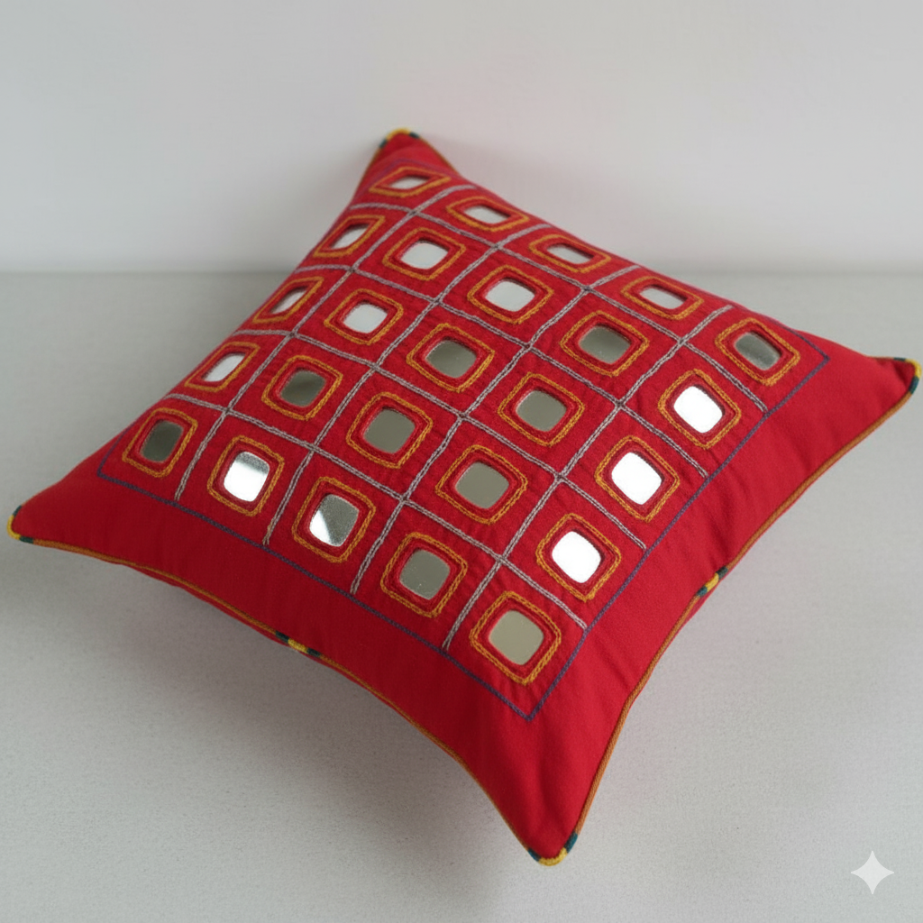 Celebrate the beauty of Sindhi craftsmanship with our Heritage Mirror Cushion. Each cushion is meticulously handmade by skilled artisans, featuring delicate mirror embellishments that catch the light and add a subtle sparkle to your home décor.
